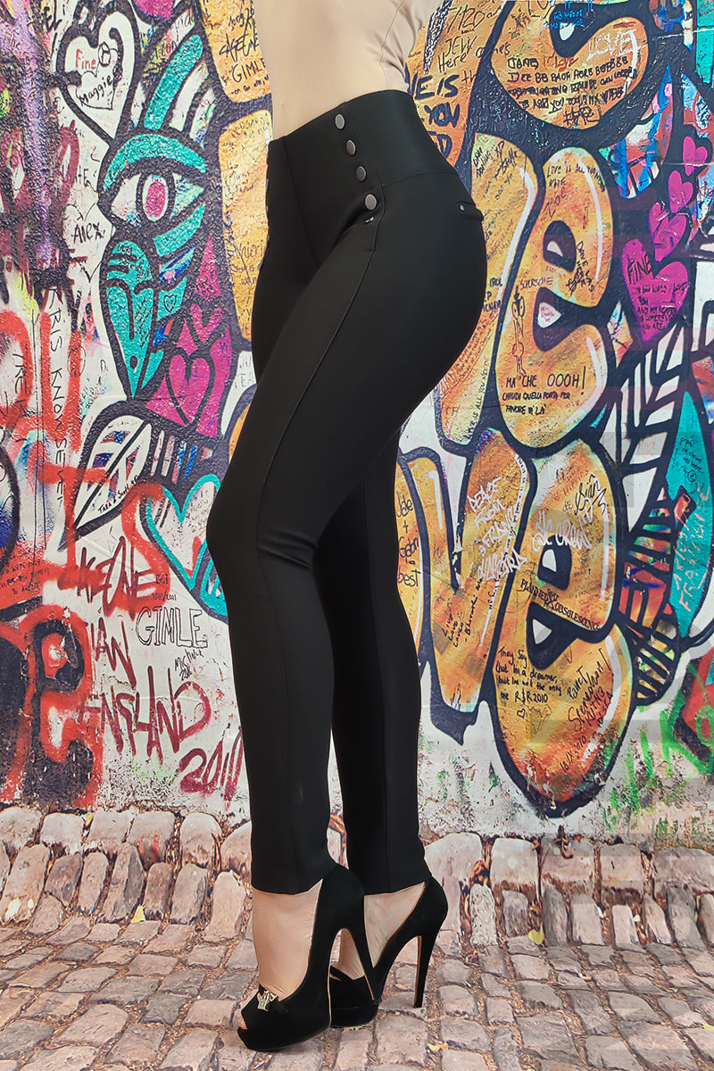 Colanti casual cu talie medie din vinil elastic F751A-1