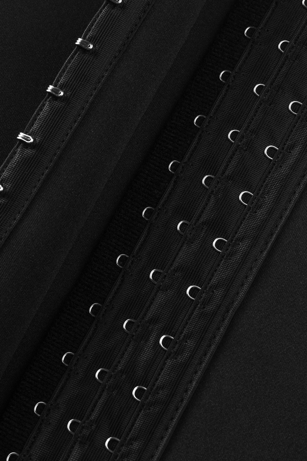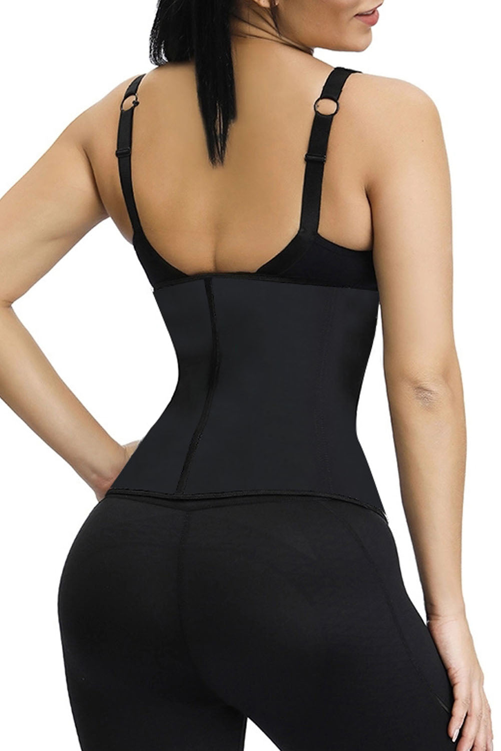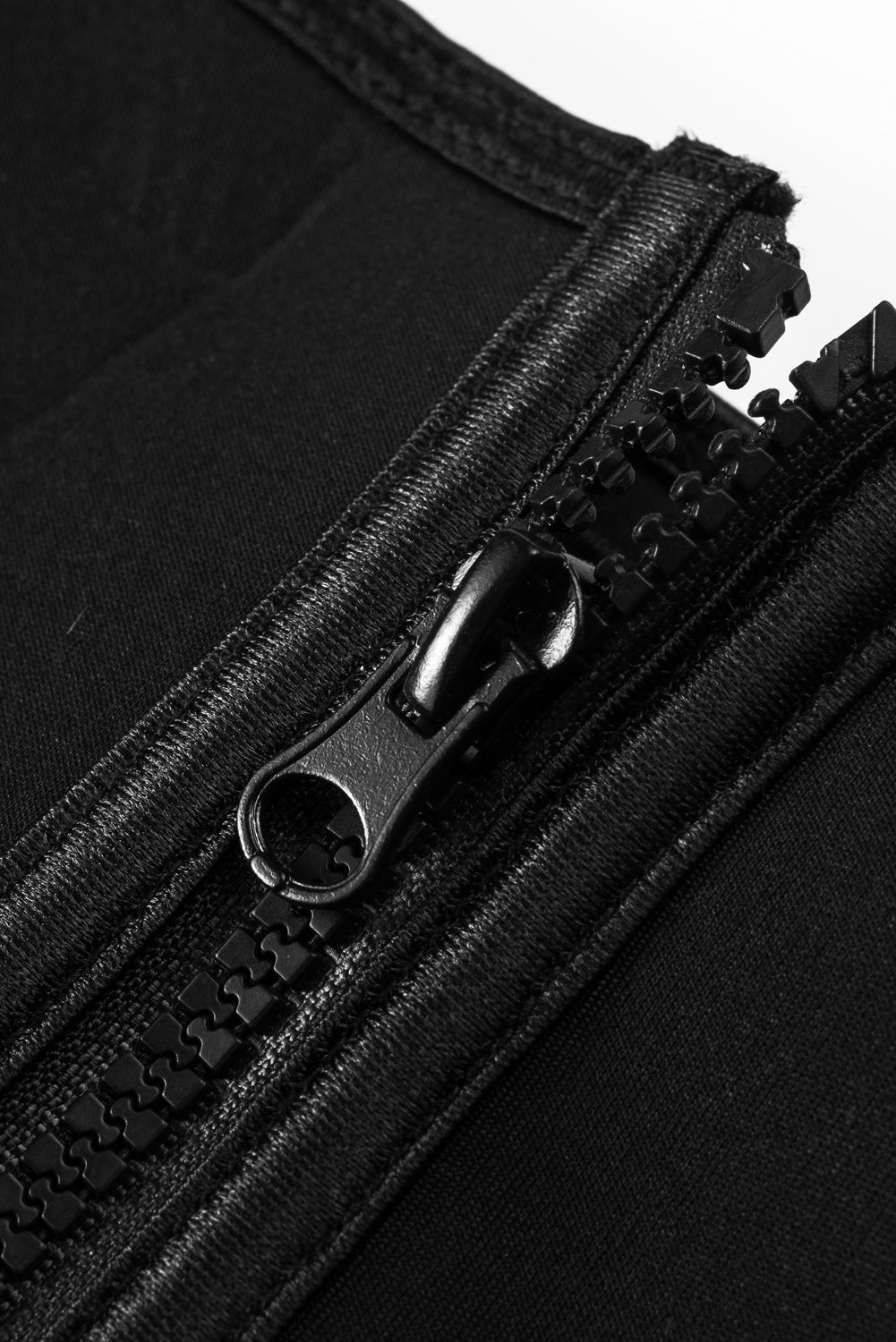 Corset modelator din neopren cu sistem dublu de inchidere pentru o buna sustinere a corpului. Are mai multe nivele de prindere stil mos-baba si material dublu in partea din fata cu fermuar.