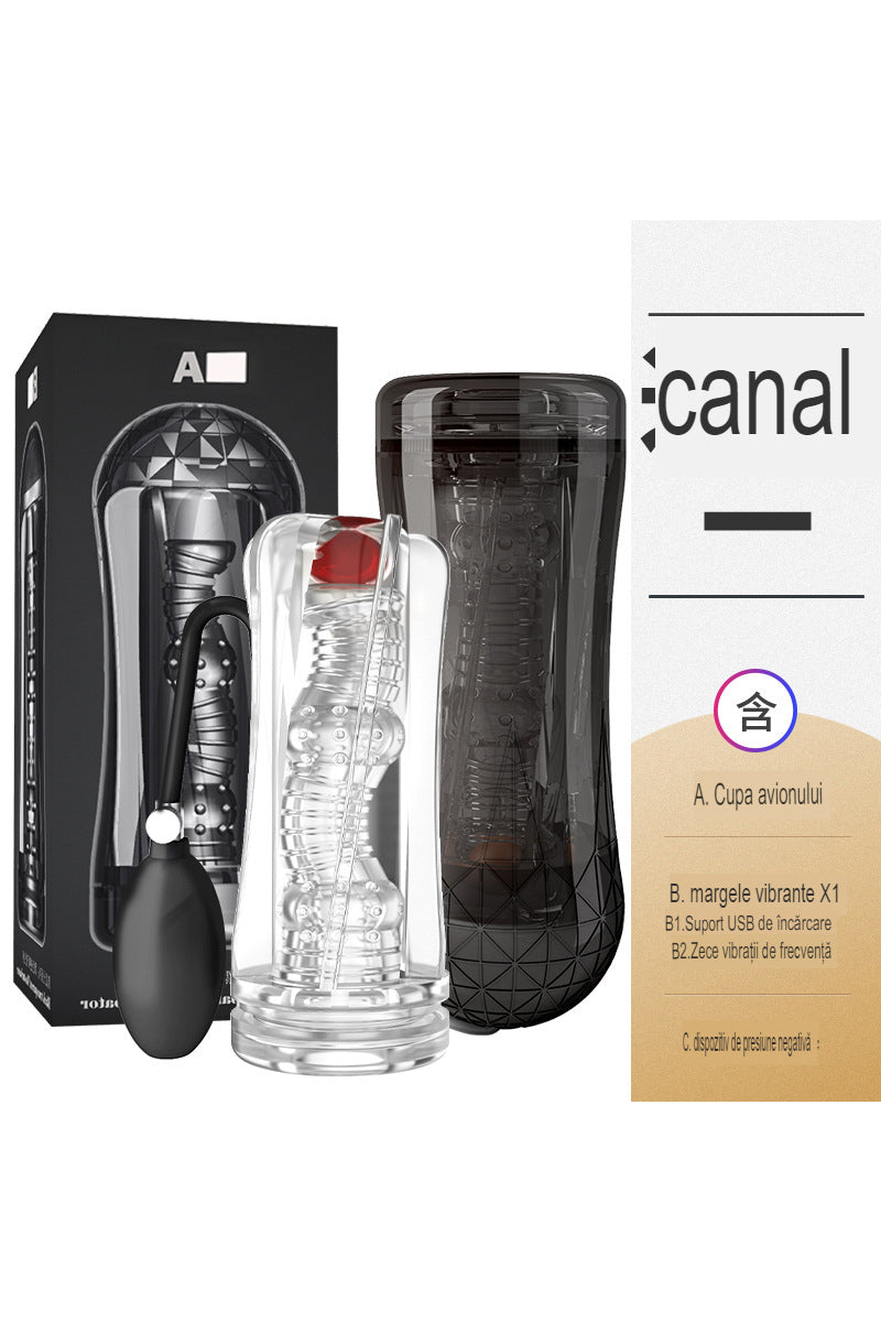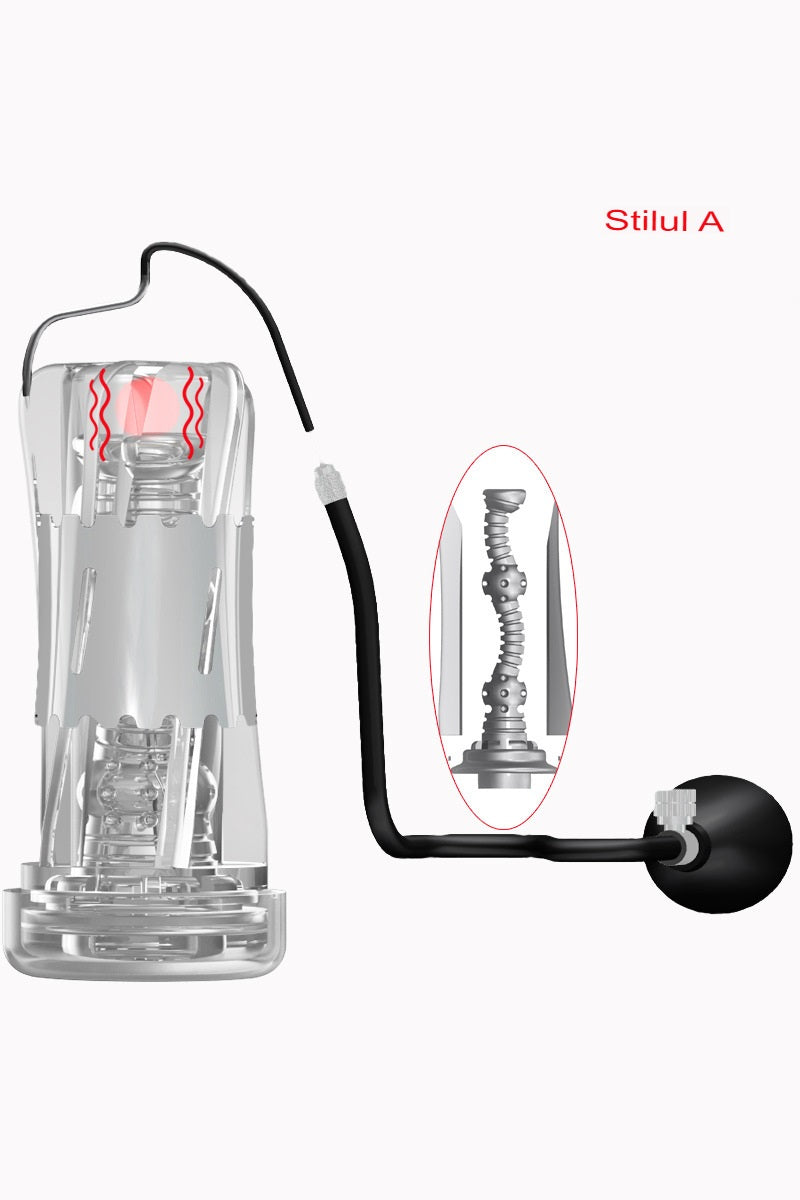 Masturbator tip cupa cu pompa de umflare si bila vibratoare, Incolor - Descriere si Caracteristici