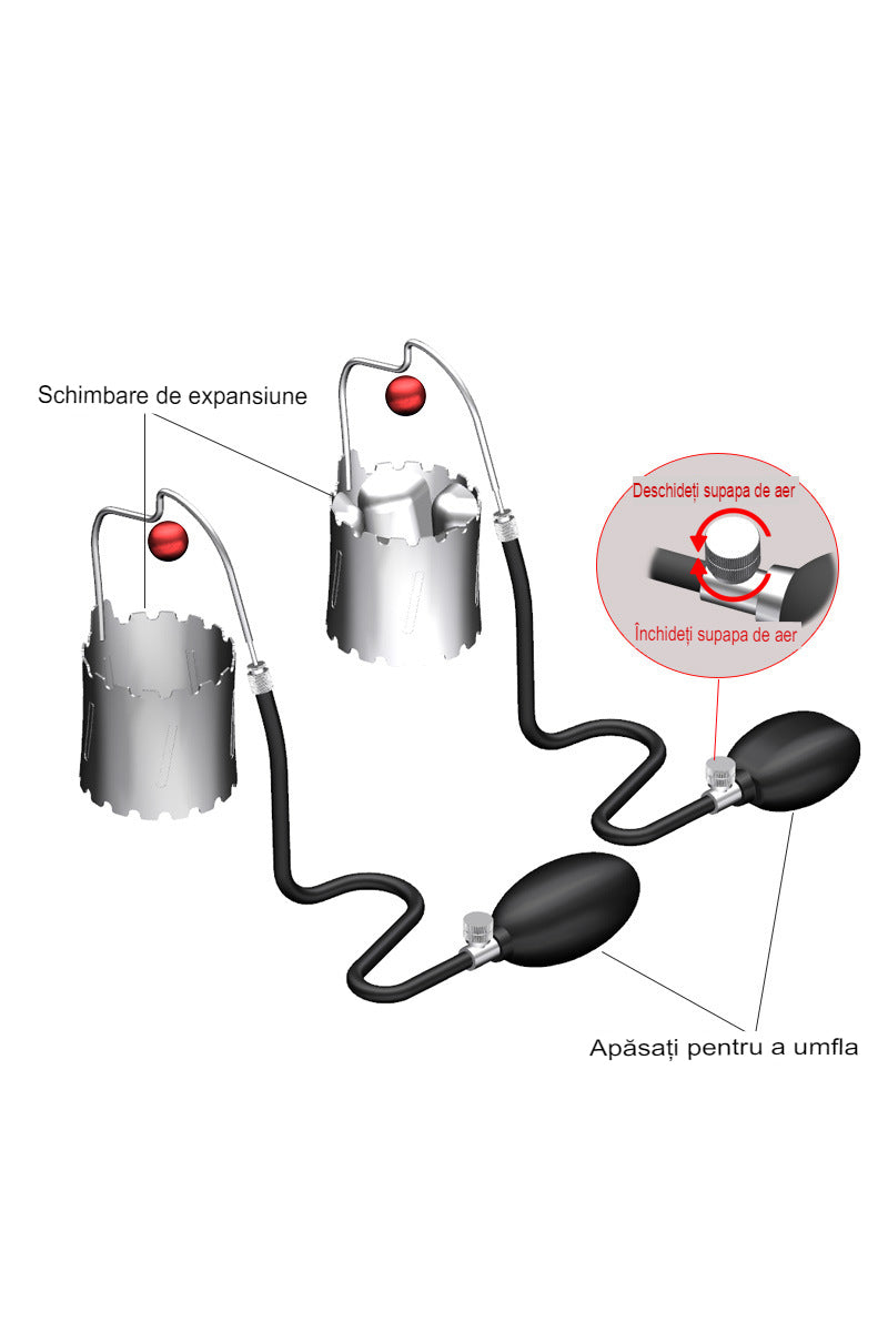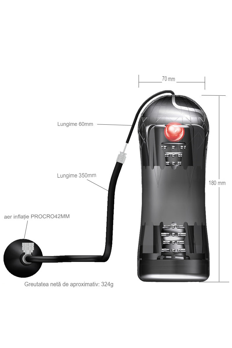 • Pompa de Umflare: Ajusteaza diametrul pentru intensificarea placerii. Pompa de aer comprimata ofera control complet asupra presiunii interne.