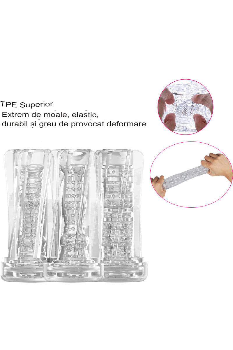 • Design 3D Realist: Structura bogata in spirală si proeminente interne pentru o stimulare maxima. Ajuta la antrenarea rezistentei pentru a prelungi timpul sexual.