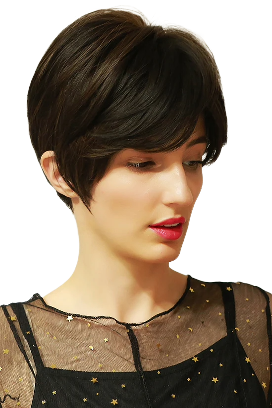 Peruca saten inchis tunsa scurt cu perciuni si breton PER116-8888