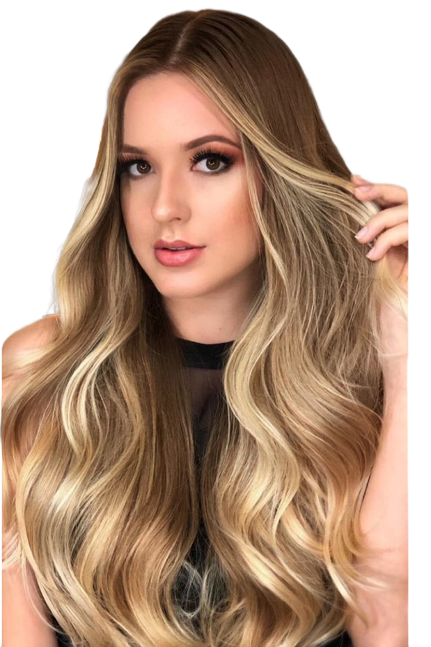 Peruca satena ombre cu blond, par lung, usor ondulat.