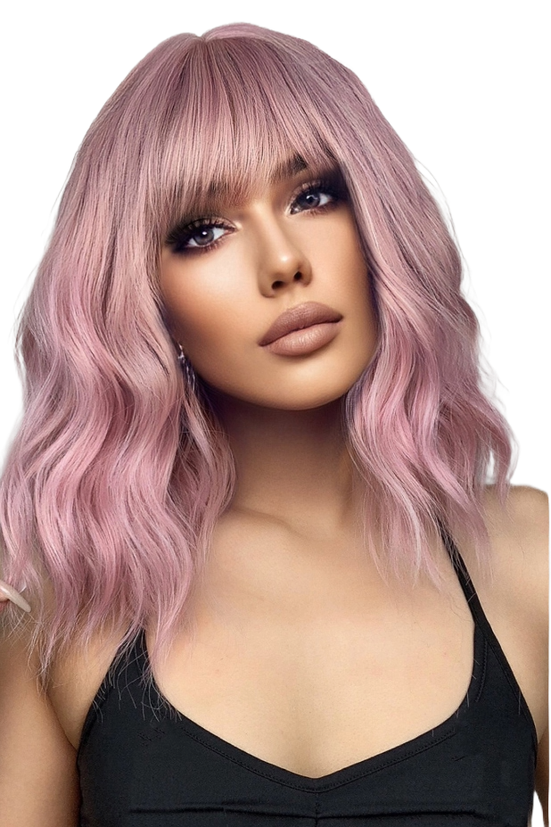 Peruca roza cu par mediu, breton si onduleuri usoare PER77-5