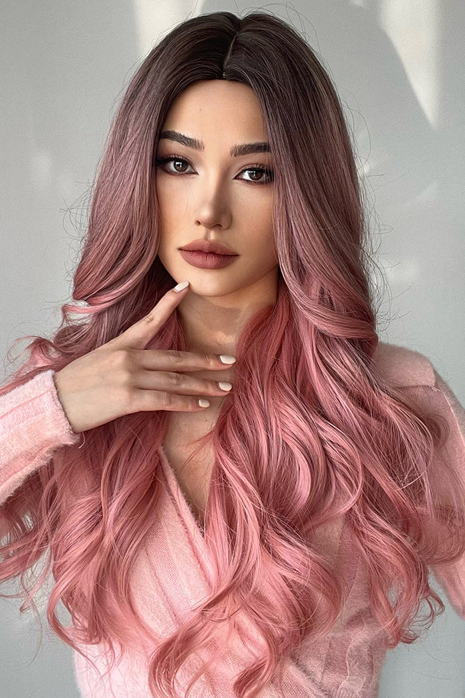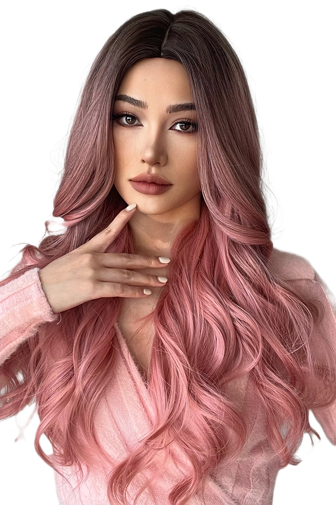 Peruca roz pamantiu cu par lung usor ondulat PER115-20