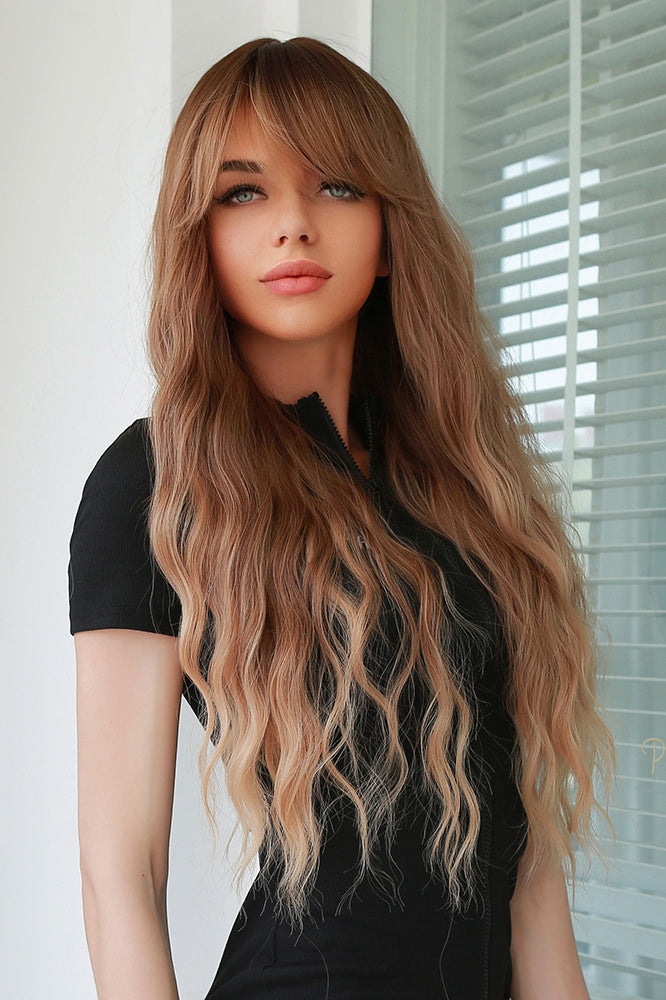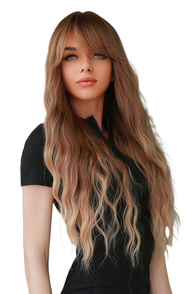 Peruca cu par lung usor ondulat, breton si culoare in degrade PER91-100