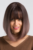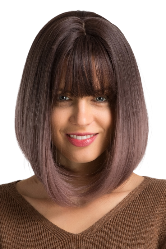 Peruca eleganta dama bob mediu castaniu cu breton – aspect natural, PER154-8989
