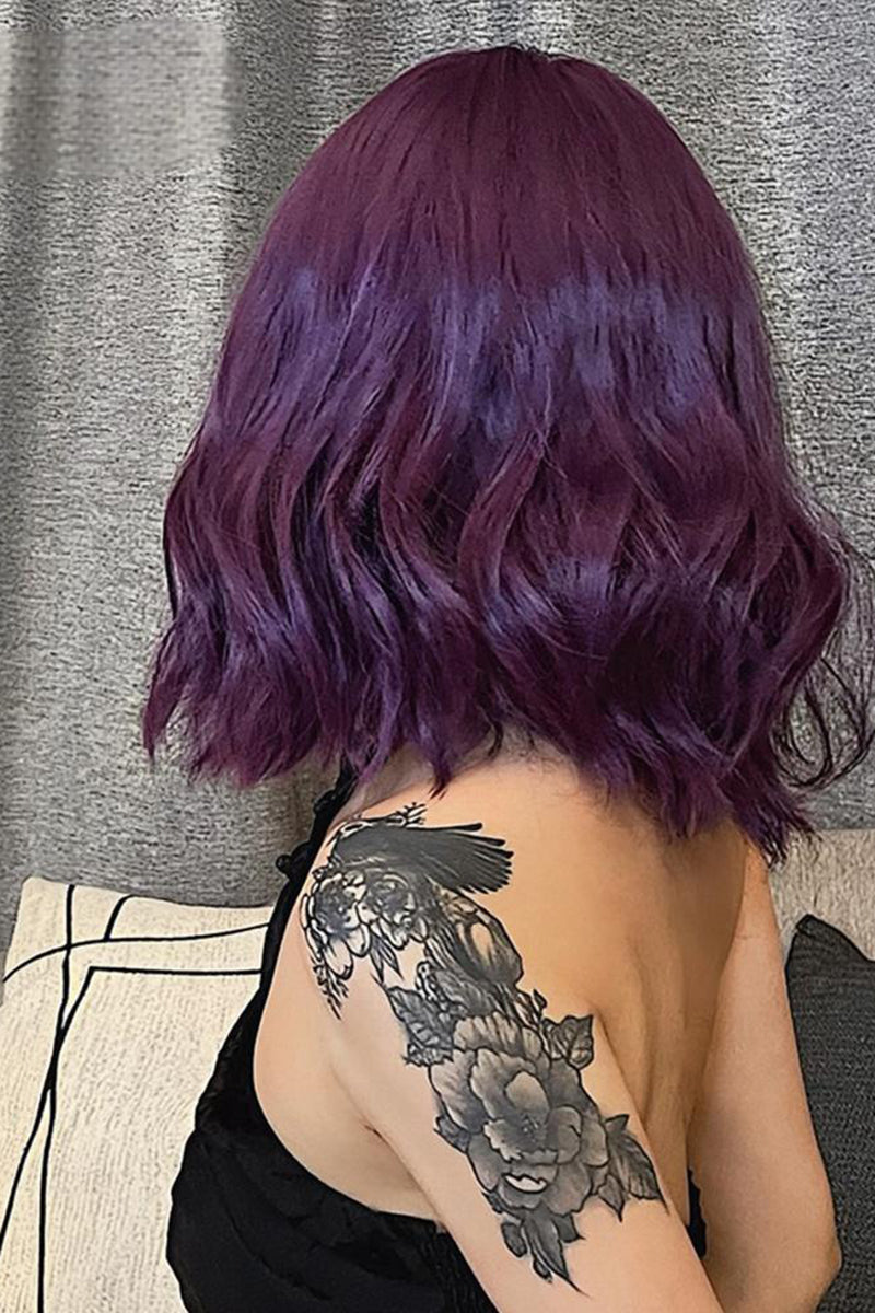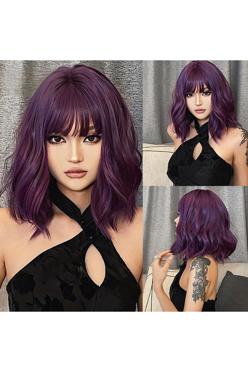 Peruca bob medie ondulata mov cu breton – fibra sintetica, PER151-11