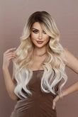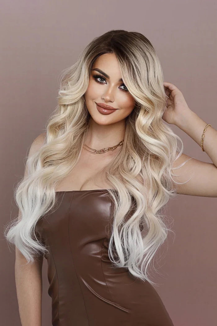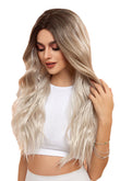Peruca fashion dama lunga ondulata blond platinat, 55 cm, look ombre modern, PER155-9999