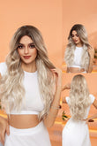 Peruca dama lunga ondulata saten deschis cu blond platinat – fibra premium 28 inch