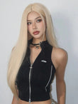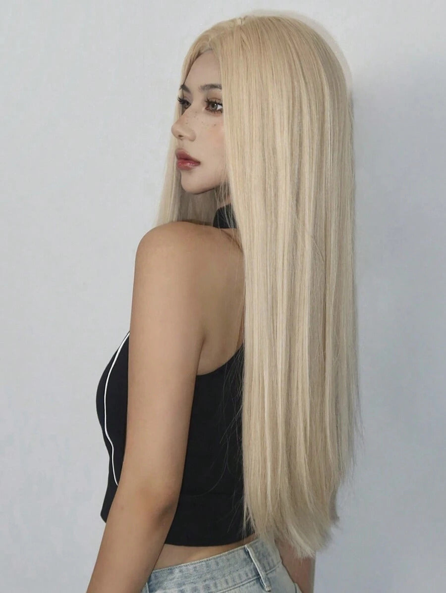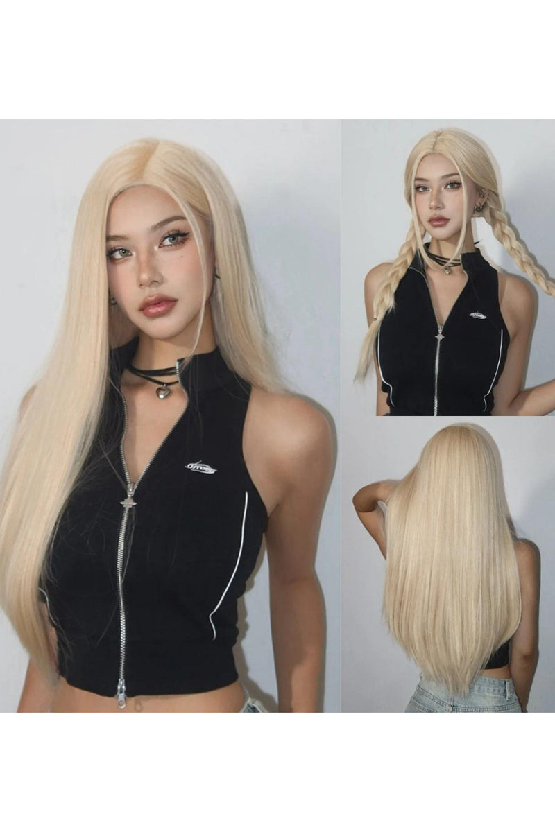 Peruca lunga dreapta blond platinat cu carare pe mijloc - Descriere si Caracteristici