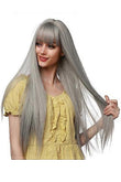 Peruca lunga dreapta gri argintiu cu breton - Descriere si Caracteristici