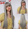 Peruca lunga dreapta gri argintiu cu breton, fibra sintetica premium, PER130A-18