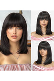 Peruca saten inchis, usor ondulata si breton PER113A-8888