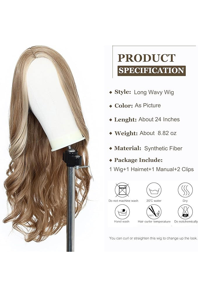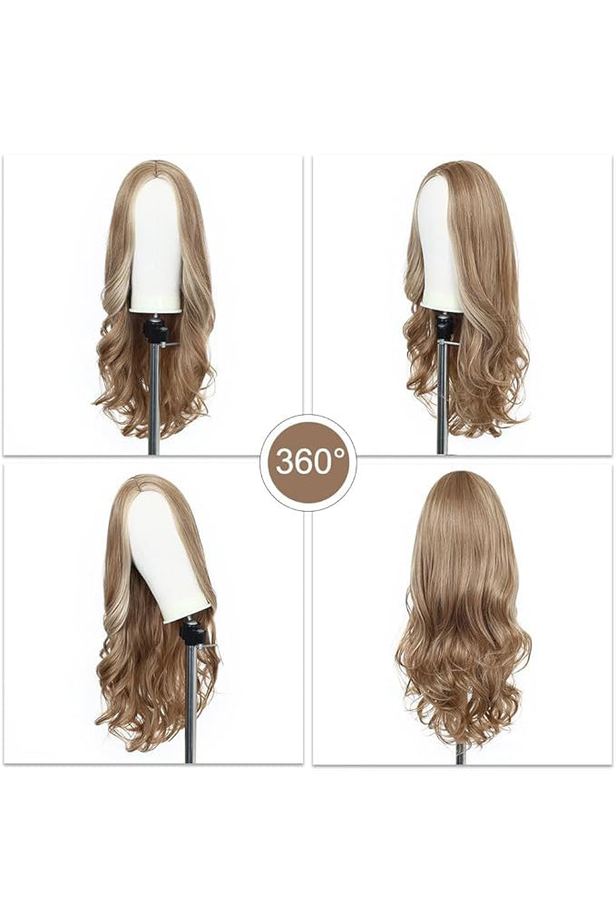 Peruca dama lunga ondulata balayage blond caramel cu suvite deschise – fibra sintetica premium 24 inch