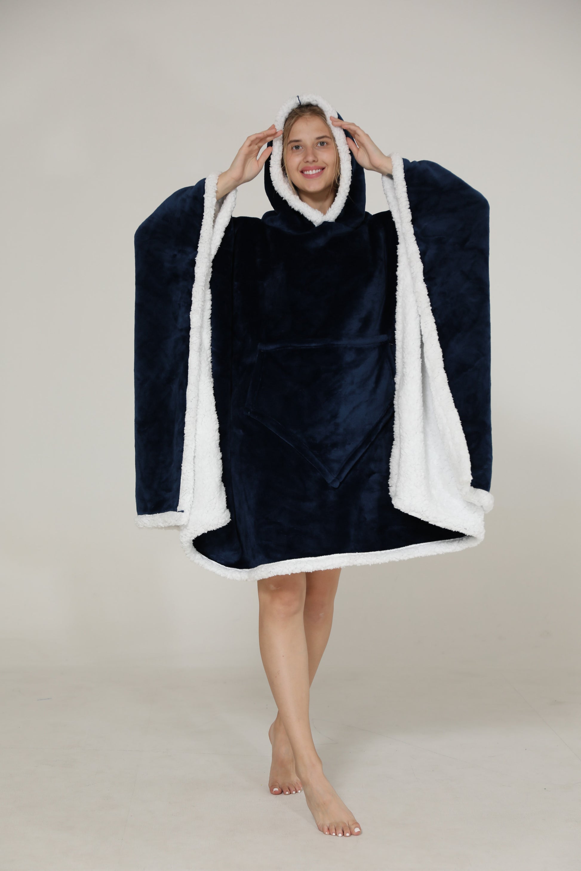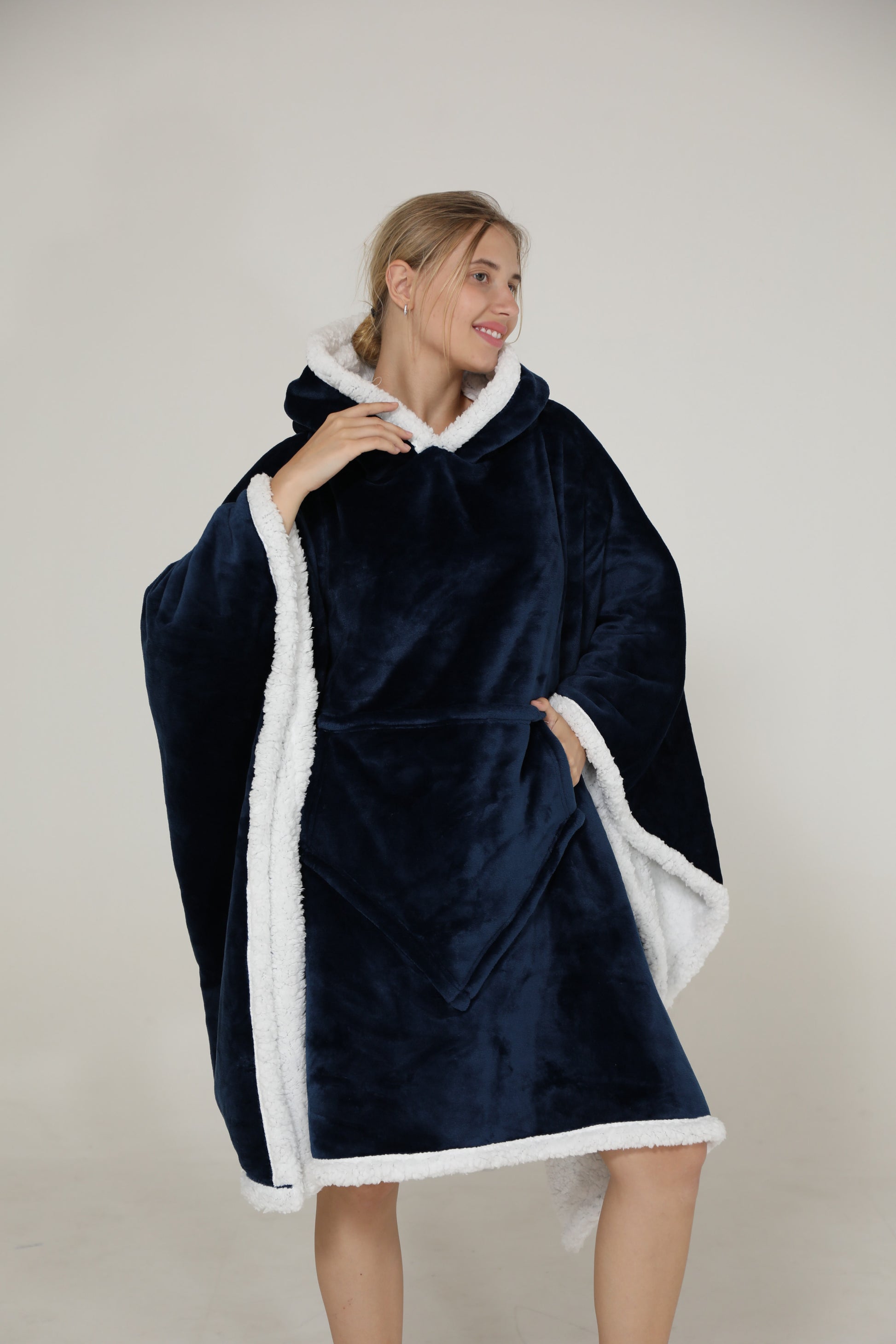 Poncho din material pufos cu gluga atasata ideal pentru zilele friguroase