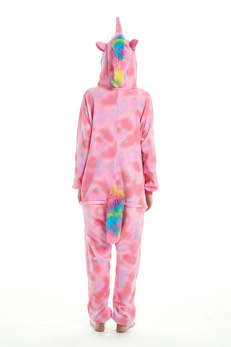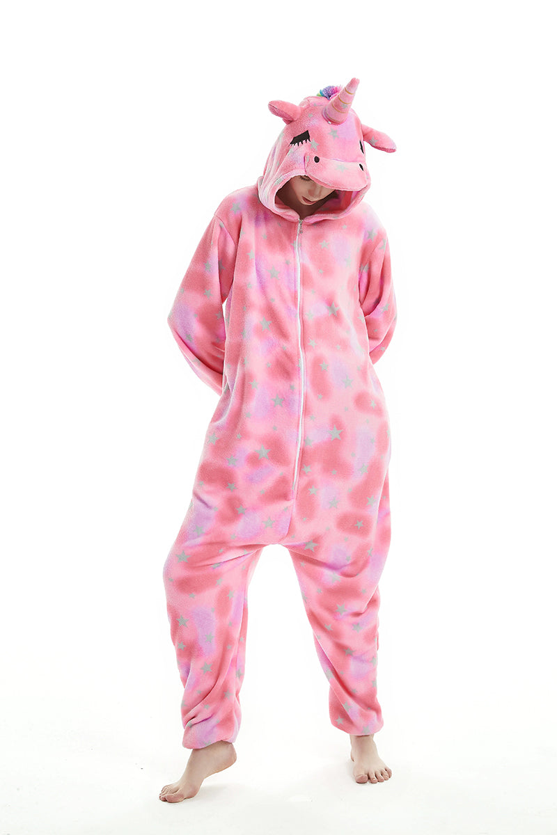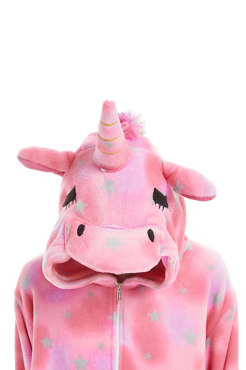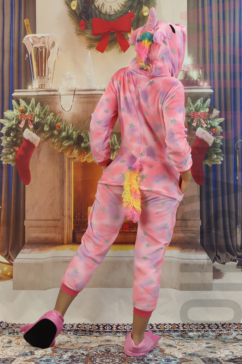 Pijama intreaga pufoasa cu model unicorn roz PJM76-5