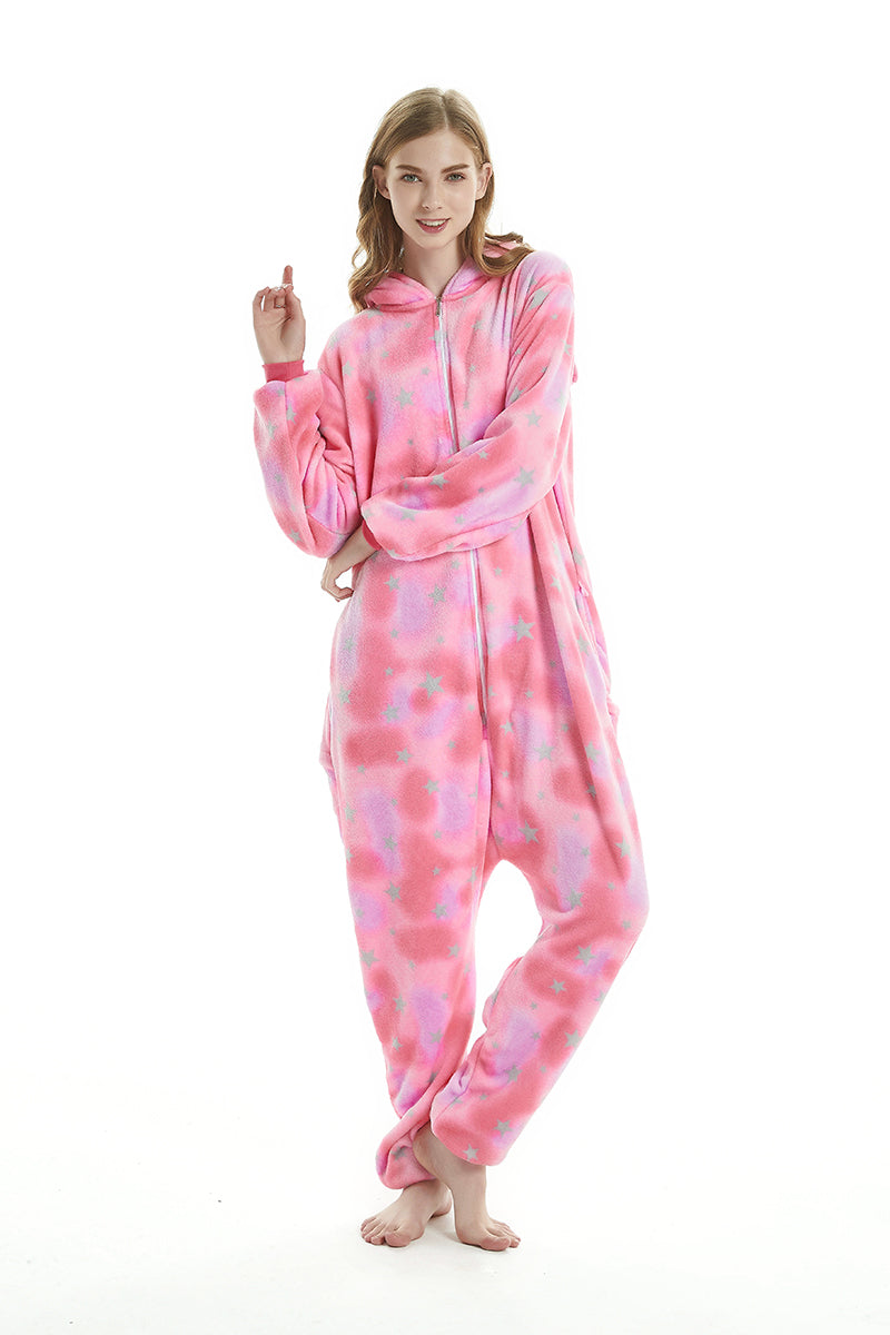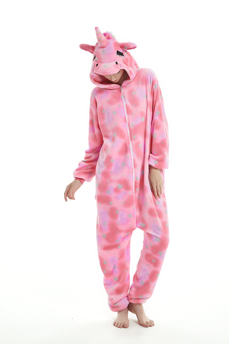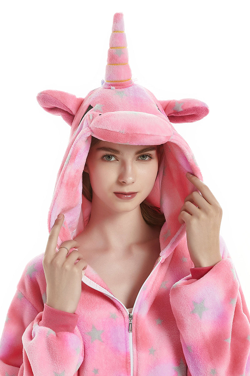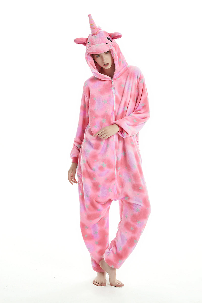 Pijama intreaga pufoasa cu model unicorn roz PJM76-5