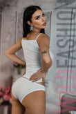 Compleu din bumbac alcatuit din maiou cu bretele subtiri decolteu in V cu broderie si chilot clasic cu broderie elastic in talie si captusit inghinal