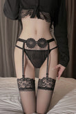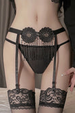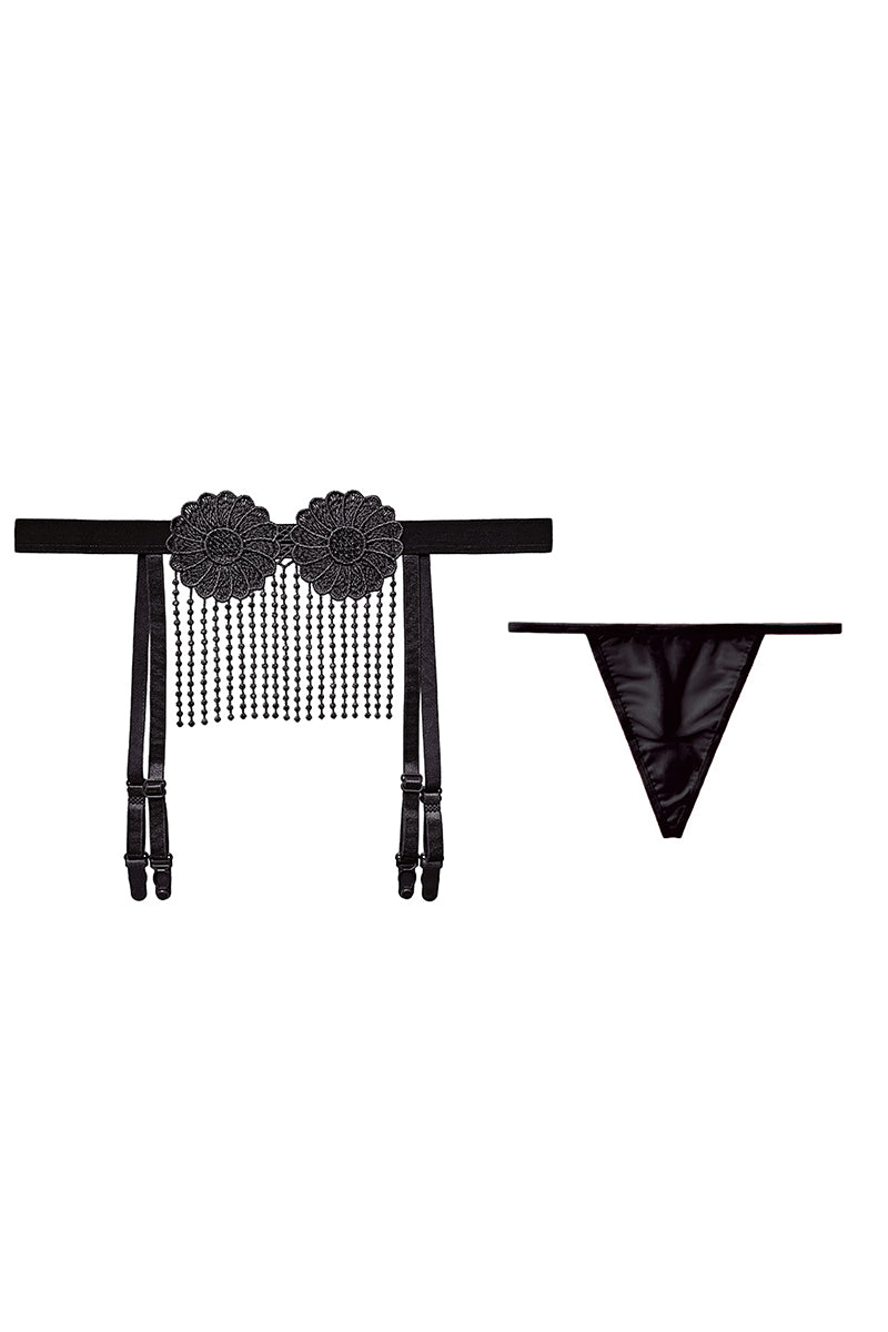 "Seduction Bloom" – Set portjartiera si chilot snur Negru, GS1321-1