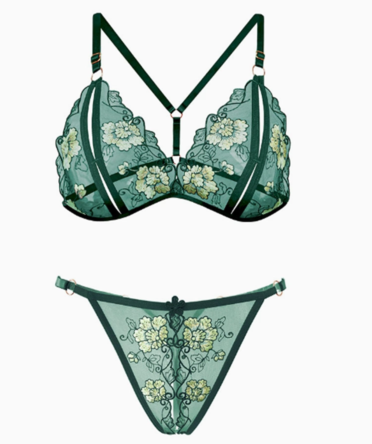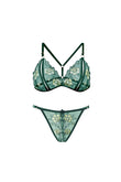 Set 2 piese lenjerie kinky din sutien si chilot cu decupaje si broderie, Verde - Descriere si Caracteristici