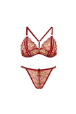 Set 2 piese lenjerie kinky din sutien si chilot cu decupaje si broderie, Visiniu - Descriere si Caracteristici