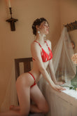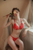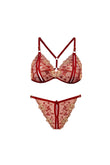 Set 3 piese lenjerie sexy cu broderie florala si margele, Rosu, GS1332-3