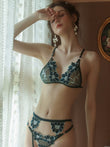 • Realizat din materiale fine si transparente, acest set atrage atentia prin detalii florale brodate in nuante vibrante de verde smarald, oferind un contrast superb pe piele.