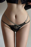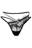 Chilot tanga sexy din plasa cu dantela si accesorii metalice, Negru, GS1310-1