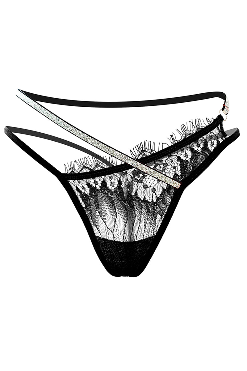 Chilot tanga sexy cu dantela eyelash si banda argintie, Negru - Descriere si Caracteristici