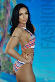 Costum de baie intreg model monokini cu print colorat, fara intarituri si captusit in fata