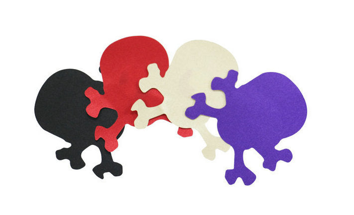 Accesorii pentru sani autoadeazive model cap de mort din material sintetic cu aspect lucios.
