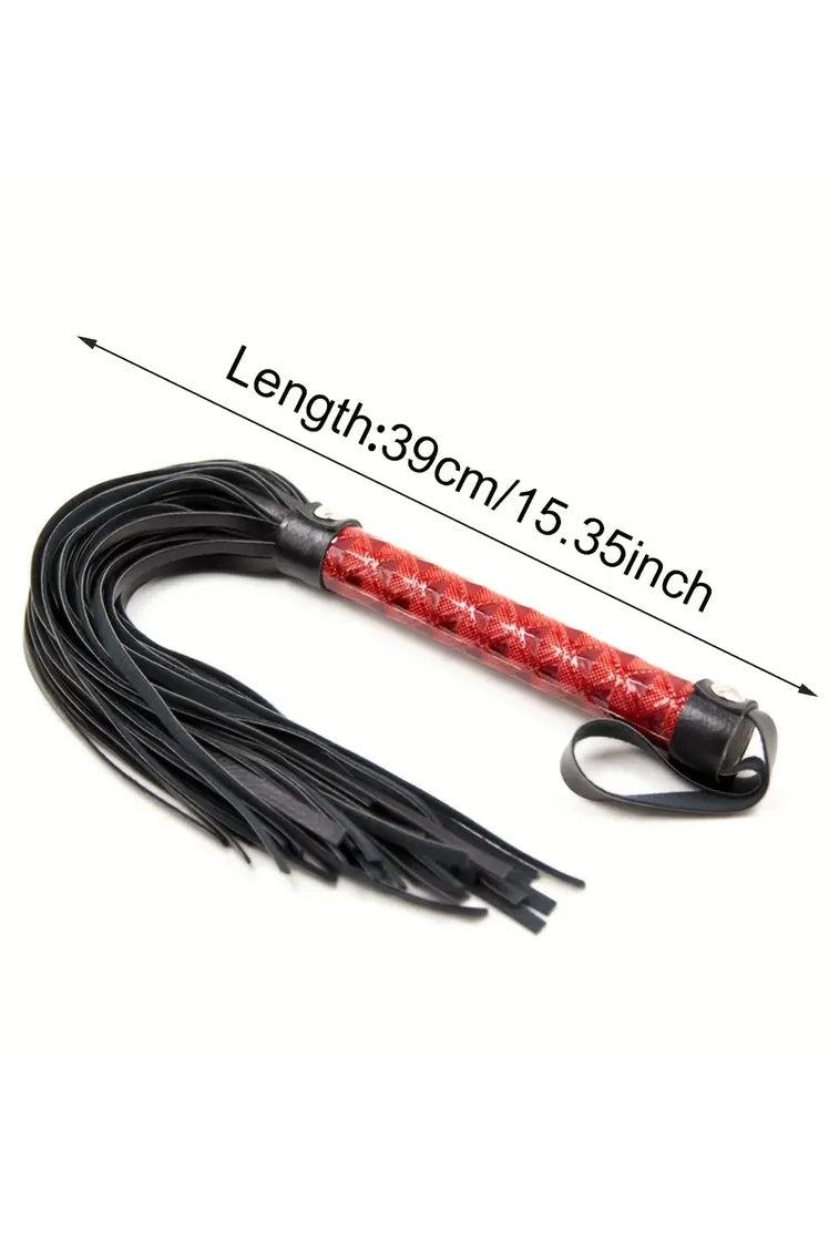 Acest bici fetish din imitatie piele este ideal pentru momente fierbinți de jocuri senzuale. Cu franjurile sale seducătoare și o lungime totală de 50 cm, oferă senzații intense și excitante.