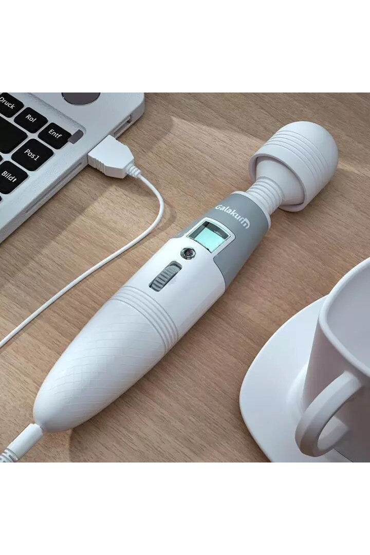 Vibrator premium tip Wand cu cap flexibil, functie de incalzire si afisaj electronic, Alb TOY453-2