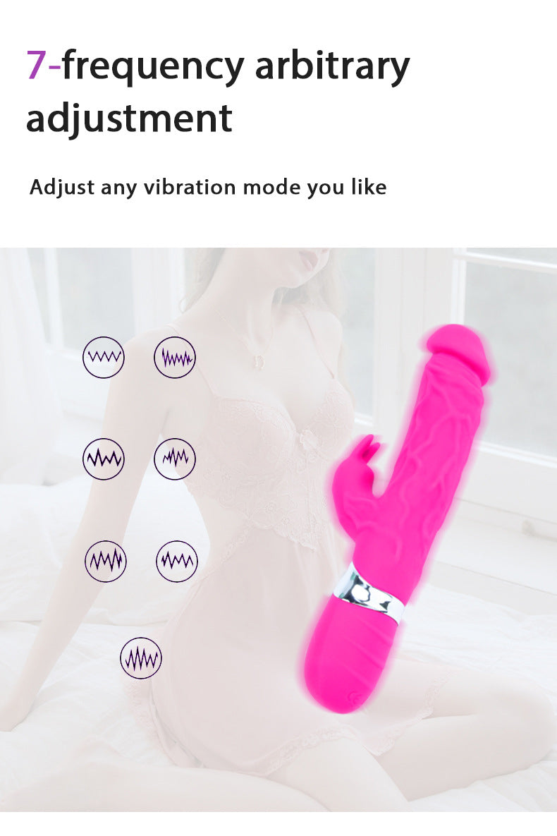 Descopera vibratorul realistic dual, tip Iepuras, creat special pentru a oferi o stimulare intensa si satisfactie deplina. Acest produs de inalta calitate este conceput pentru a simula cat mai fidel experienta reala, fiind ideal pentru stimularea simultana a clitorisului si a punctului G.