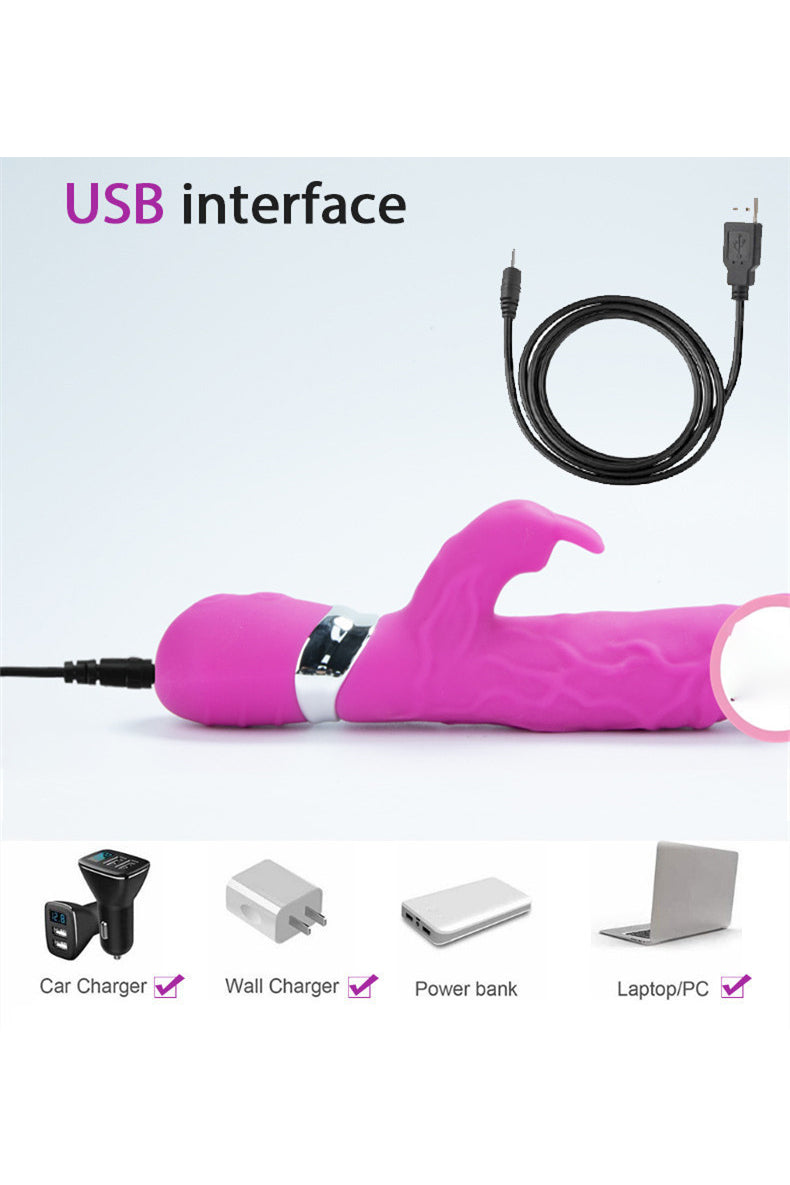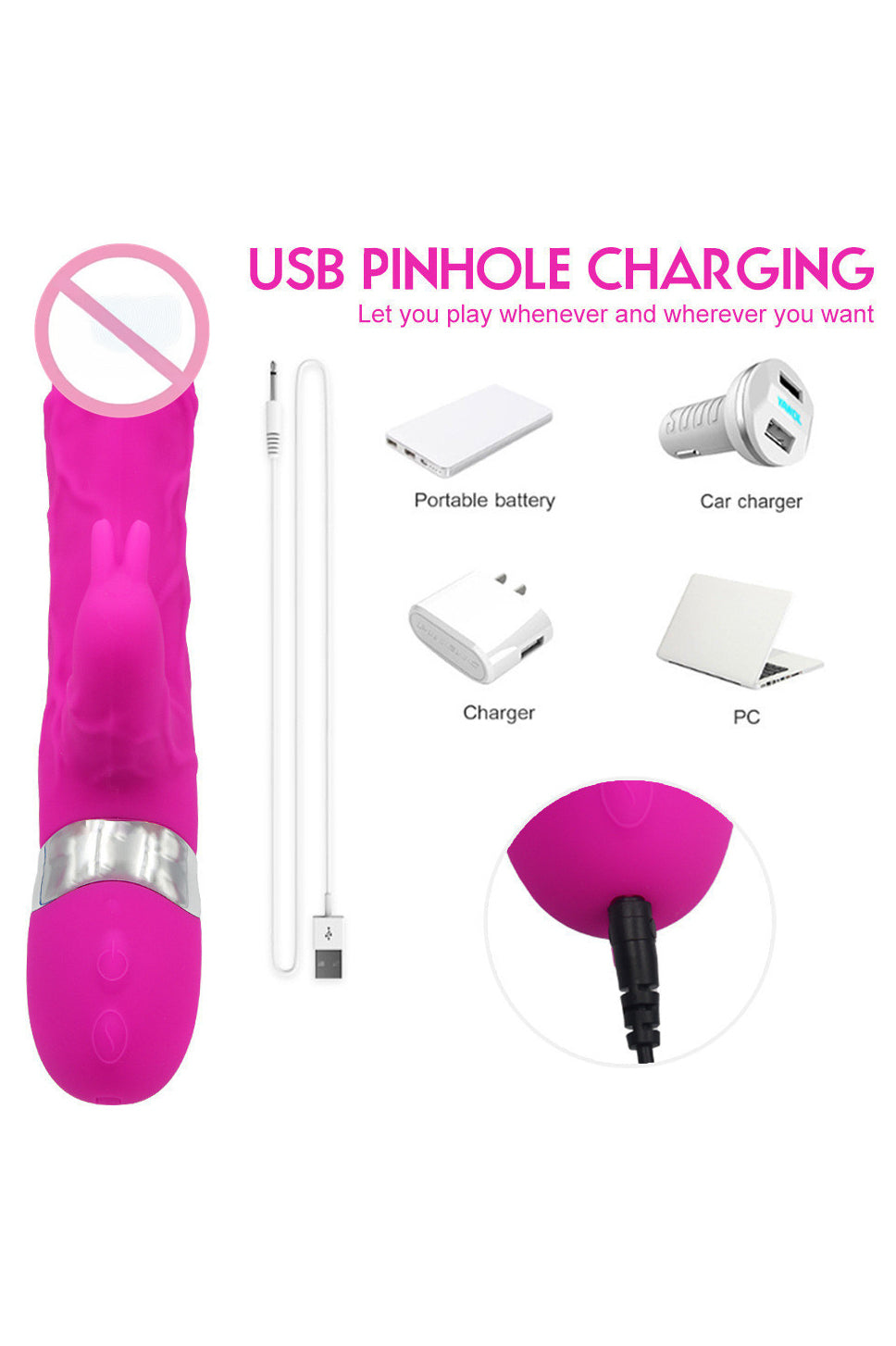Vibrator triplu functionabil cu USB cu stimulator clitoridian, Ou pentru punctul G si plug anal simplu, Roz, TOY361A-5