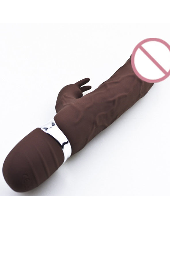 Vibrator realistic dual, tip IEPURAS, cu doua zone de vibratie pentru stimularea clitorisului si a punctului G, Maro, TOY323-8