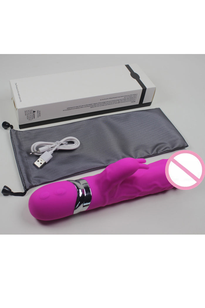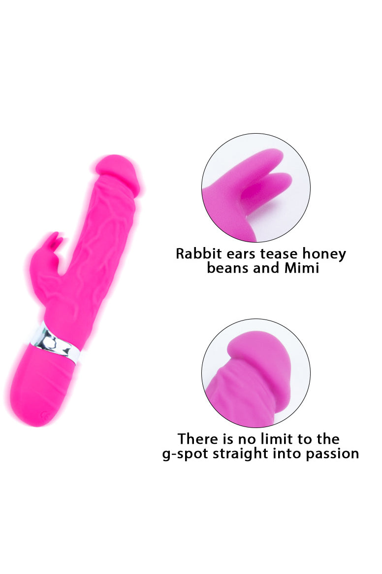 Vibrator triplu, model IEPURAS, pentru stimulare vaginala, anala si clitoridiana, cu trei zone separate de vibratii, Fuchsia, TOY318-55