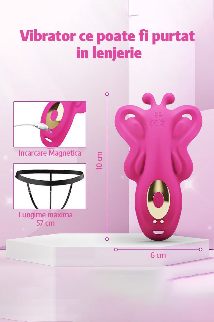 • Mini vibrator tip fluture – conceput pentru a fi purtat discret în lenjerie, oferindu-ți plăcere oriunde te afli.