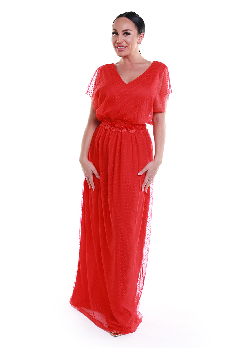 Rochie lunga, elegant, de ocazie, accesorizata cu strasuri si pietricele W649-1